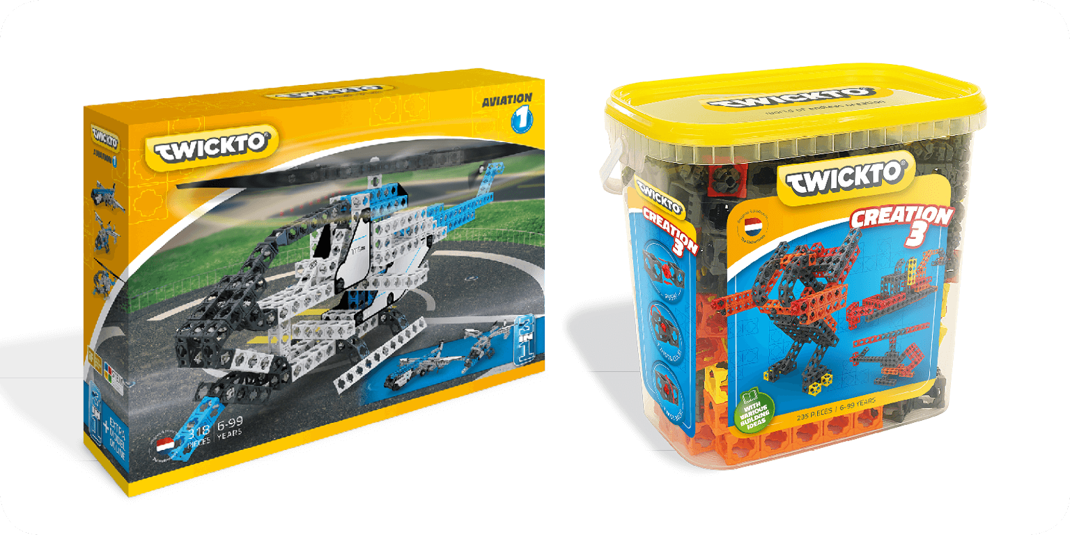 Twickto is the ultimate construction toy system for endless building fun. Not only is it fun, but it also stimulates the development of talent. The Twickto building blocks are called Bricks. The Bricks are joined by parts called Twicks. You connect the Bricks and Twicks by twisting them and clicking them into place. For certain constructions, you might need a wrench to keep on building. We call it the TwickTool. Twicks, Bricks and the TwickTool: that's all you'll need. The great thing is: Twickto allows you to build anything your mind can come up with.